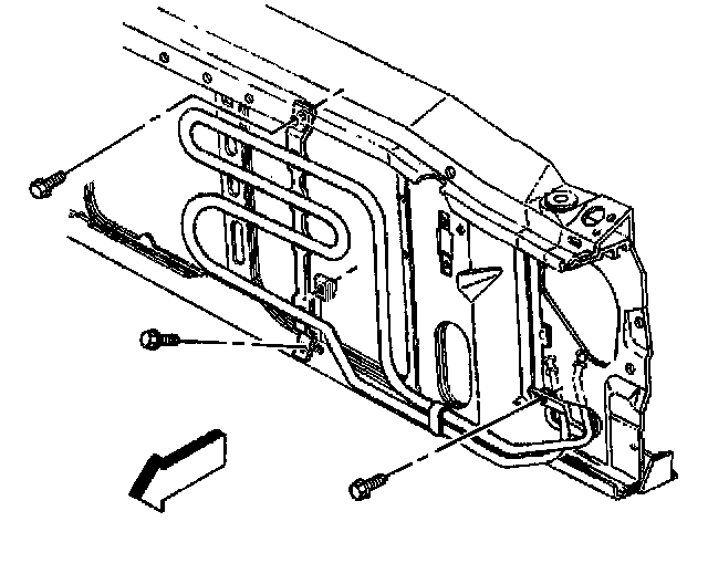 4. Remove the radiator air intake baffle. Refer to Air Intake Baffle Replacement - Radiator.