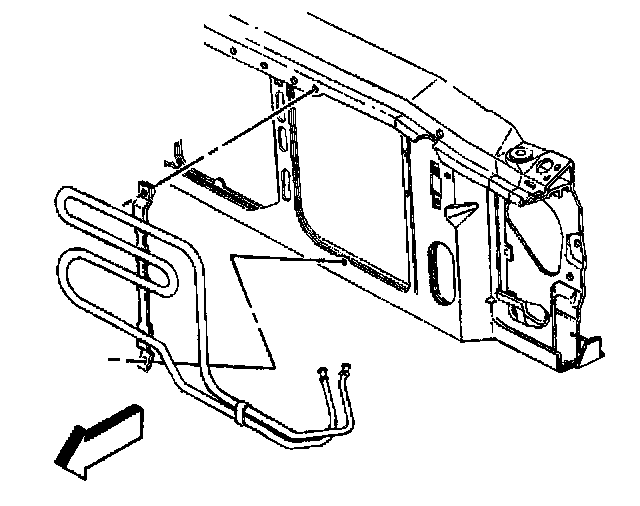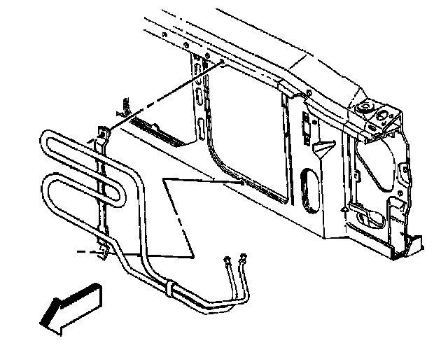 6. Remove the power steering cooler from the radiator support.