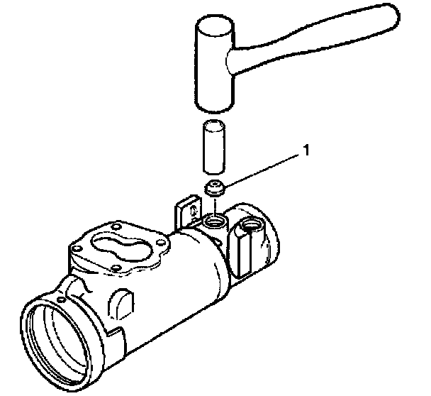 Install the check valve (1) using a 3/8 inch diameter piece of tubing 100 mm (4 inches) long to drive into the steering gear housing (2).