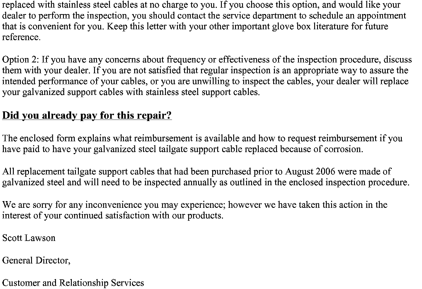 Campaign - Tailgate Cable Replacement/Warranty Extension