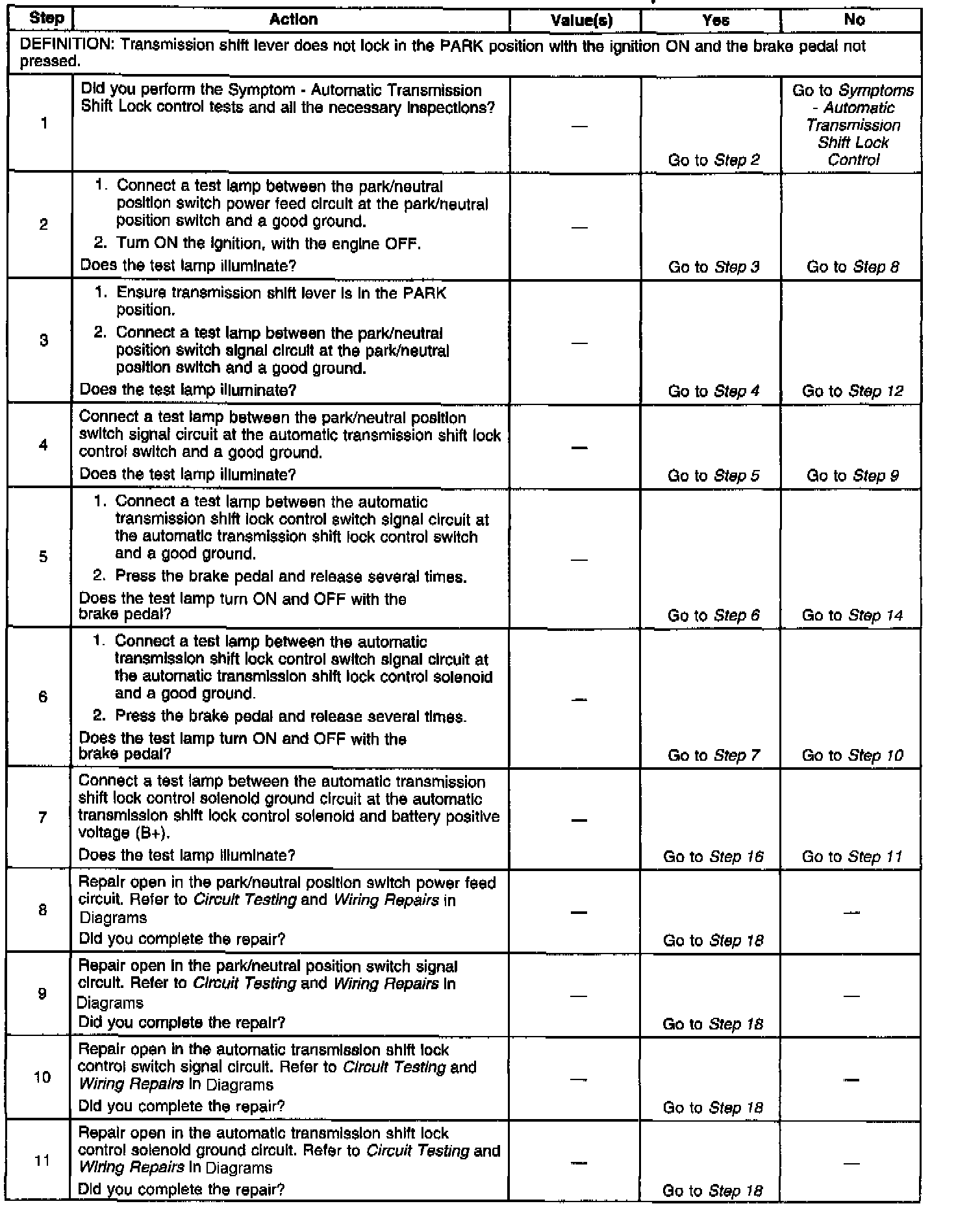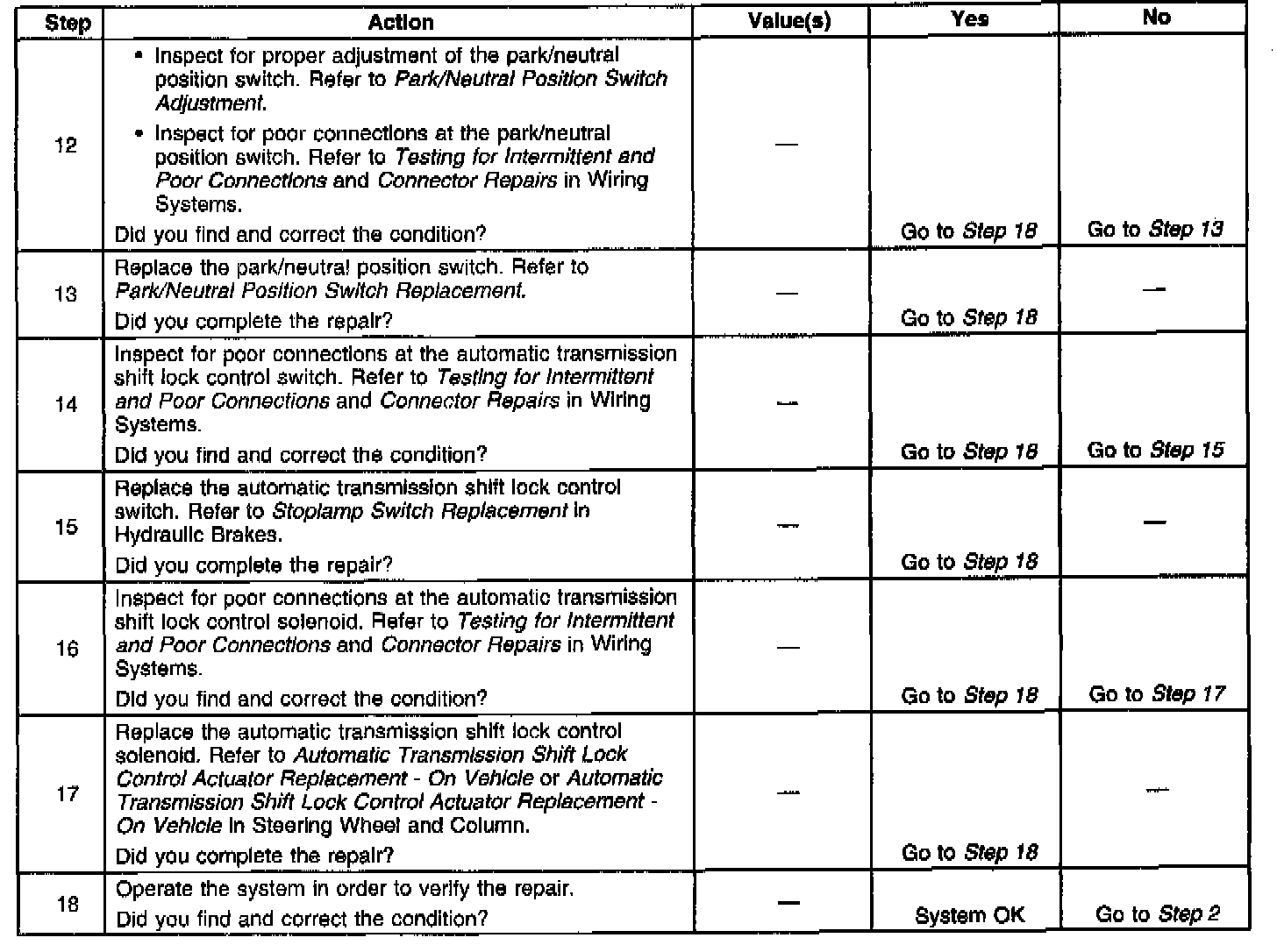 Shift Lock Control Inoperative