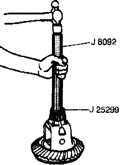 Drive the bearing on until the cone seats on the pinion shim.