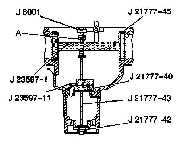 9. Assemble the J21777-45, the J23597-11, and the J8001 to the differential bearing bores. The bores must be clean and free of burrs.