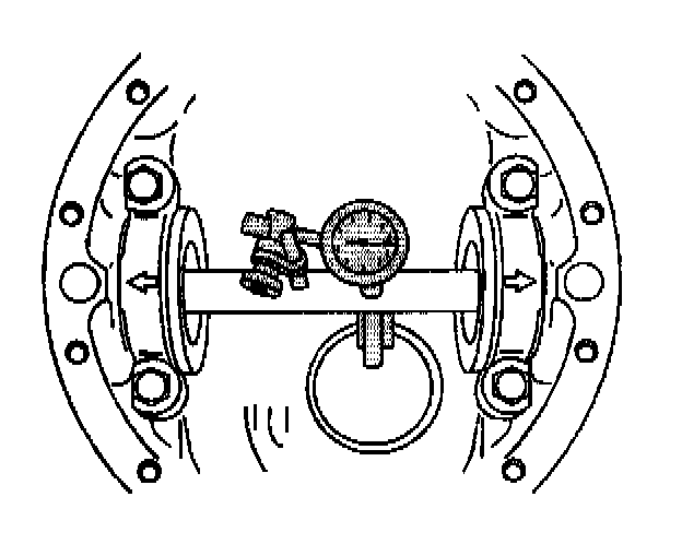 Example: If the indicator needle moved counterclockwise 1.70 mm (0.067 inch) to a dial reading of 0.84 mm (0.033 inch), record the dial reading of 0.84 mm (0.033 inch). Do not record the reading of 1.70 mm (0.067 inch). The dial indicator should be within the 0.50 - 1.27 mm (0.020 - 0.050 inch) range.