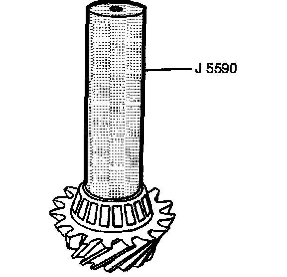 26. Install the outer pinion bearing onto the pinion using the J5590. When you drive the bearing onto the pinion, hold the pinion forward from inside the case.