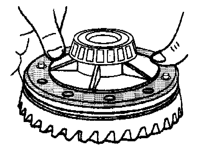 47. Place the ring gear on the case. Align the studs with the holes in the case.
