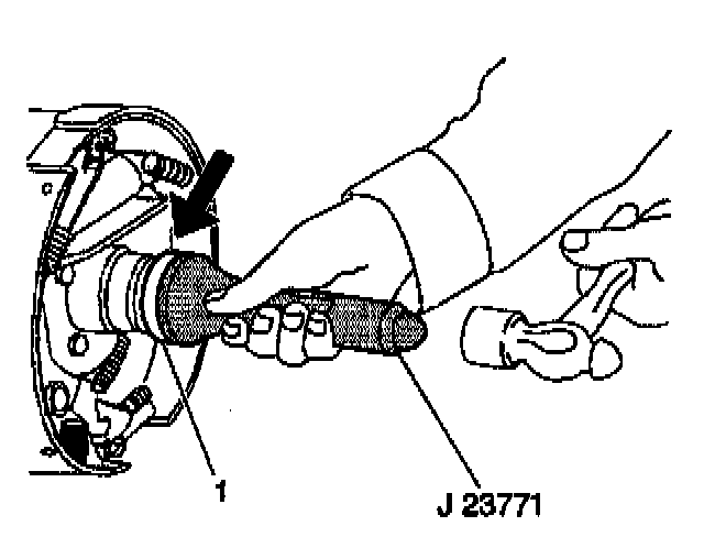 3. Install the seal (1). Use the J23771 until the seal is flush with the axle tube.