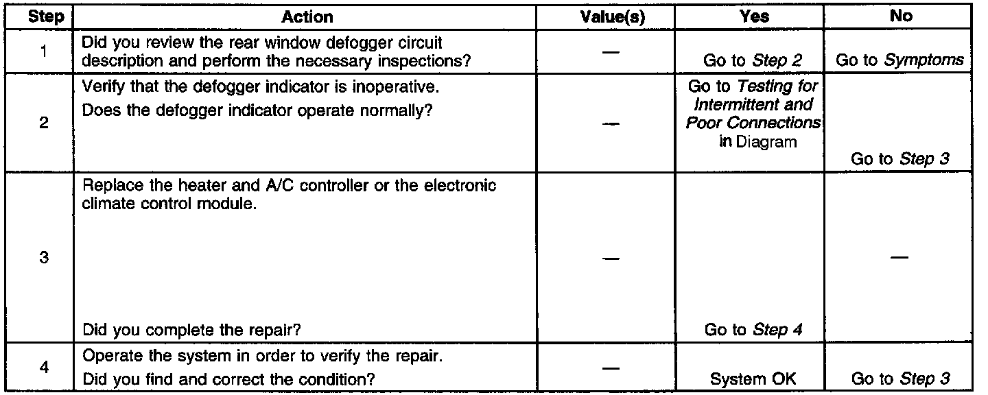 Defogger Indicator Inoperative