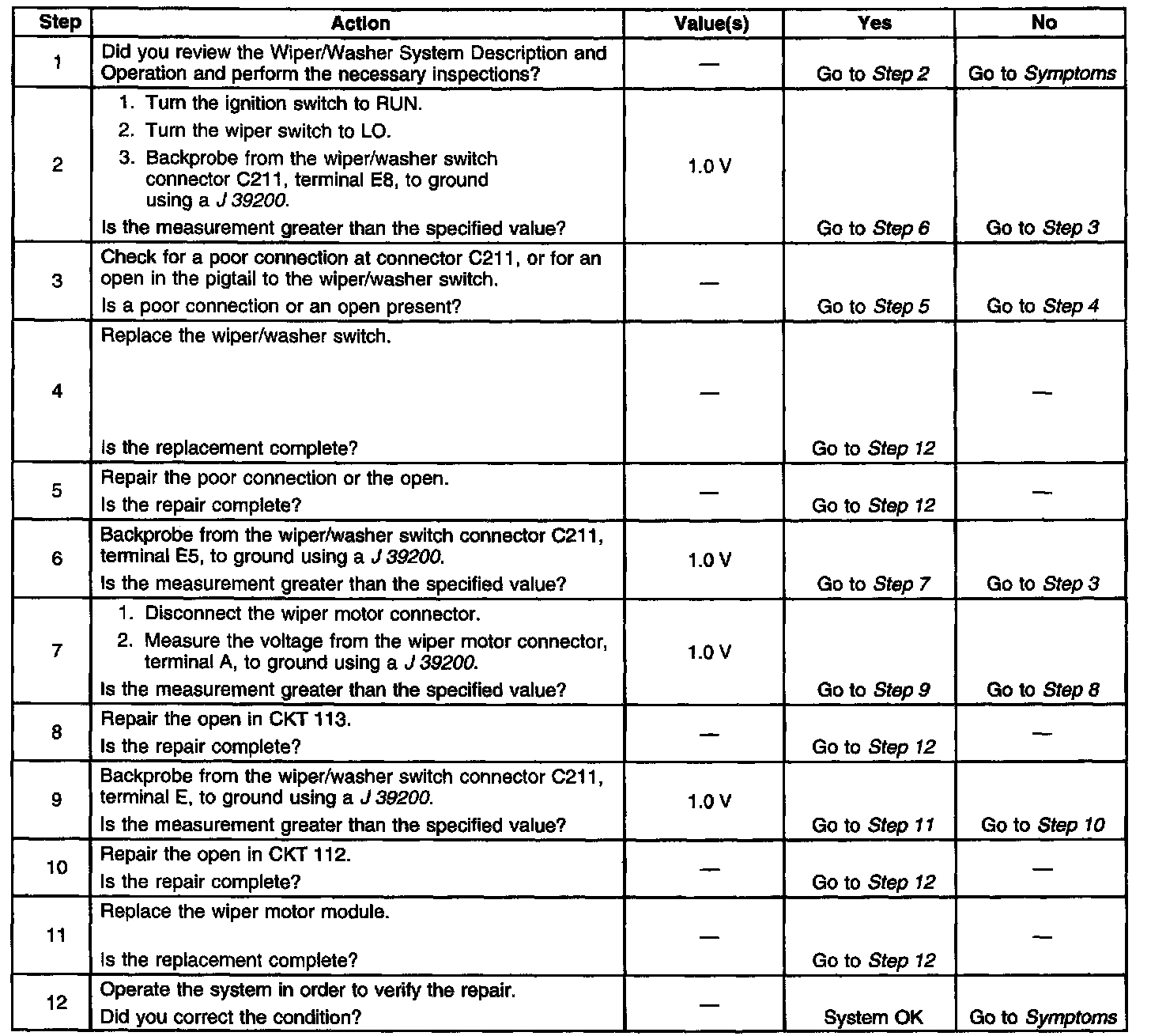 Wipers Mist, Delay, And Low Modes Inoperative: