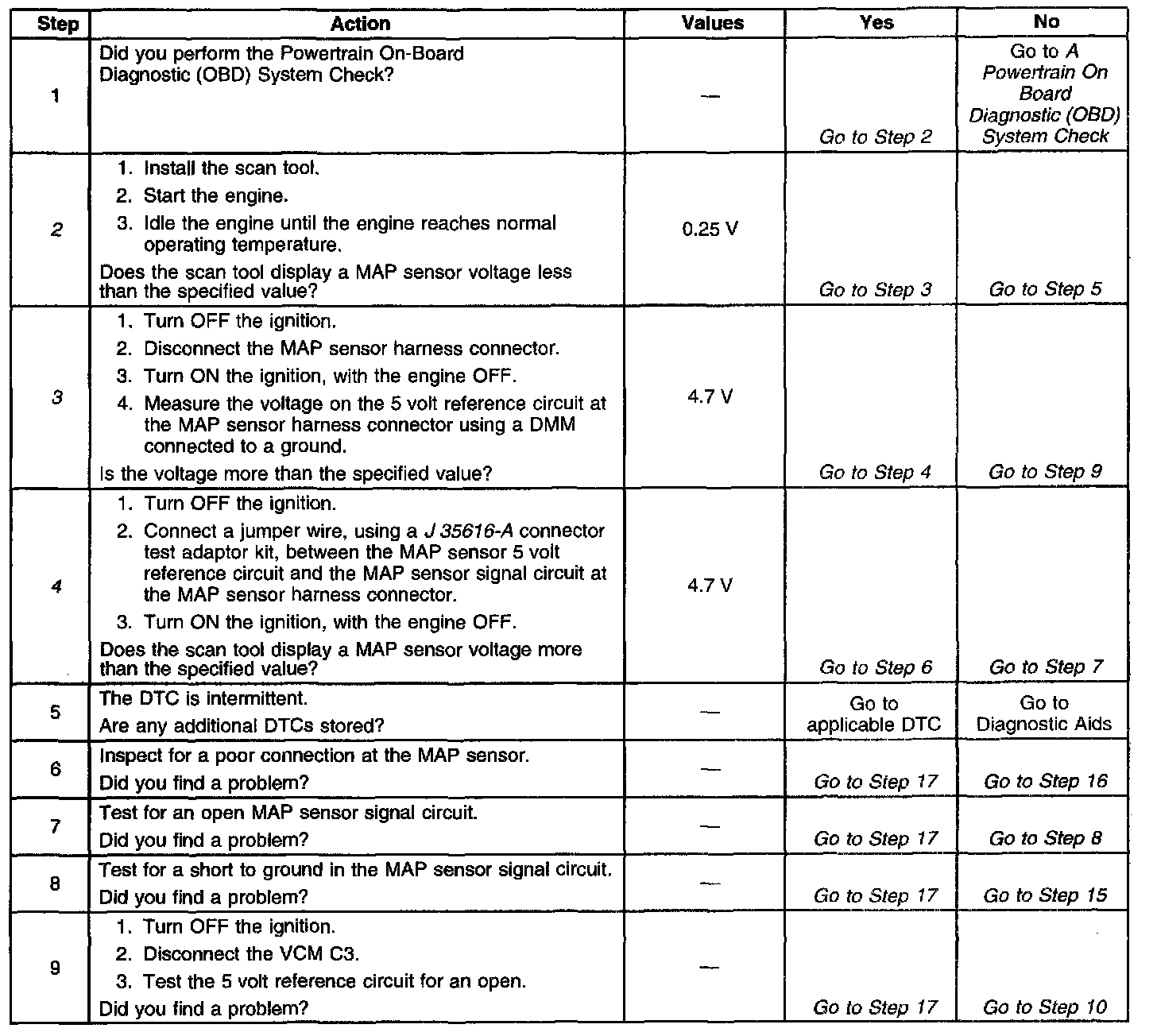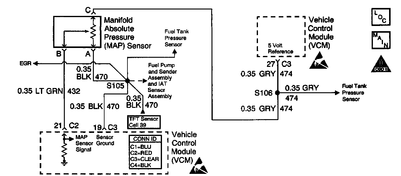 3. This step determines if the VCM is able to provide a 5 volt reference to the MAP sensor.
