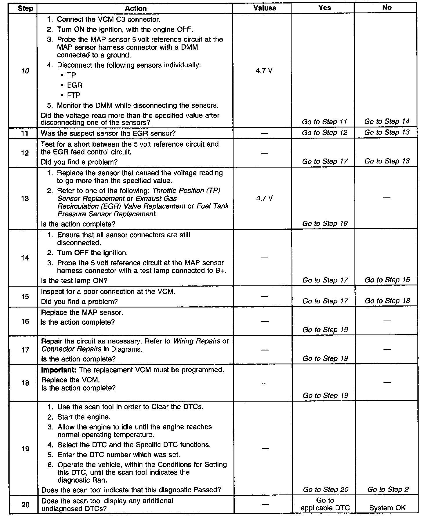 10. The 5 volt reference of the VCM supply is shared by the MAP, FTP, TP, and EGR position sensors. A short to ground at ANY of the sensors 5 volt reference circuits OR an internally shorted sensor may cause this DTC to set.