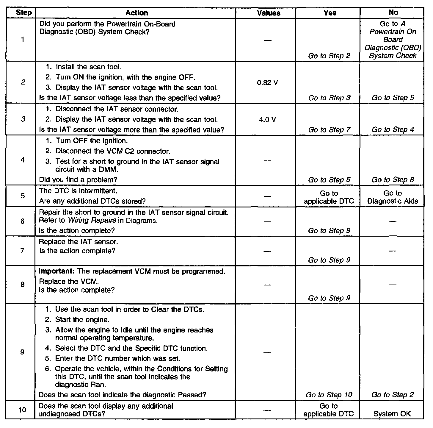 This DTC is designed to detect an IAT sensor signal voltage lower than possible in a normally operating IAT sensor.