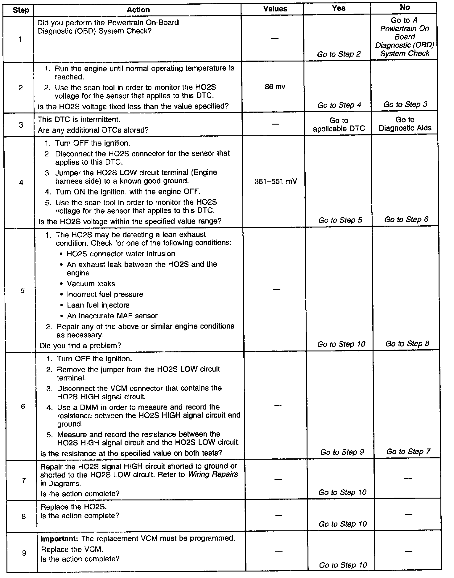 ^ The HO2S is correctly detecting a lean air-fuel ratio resulting from either a vacuum leak or a fuel control system fault.