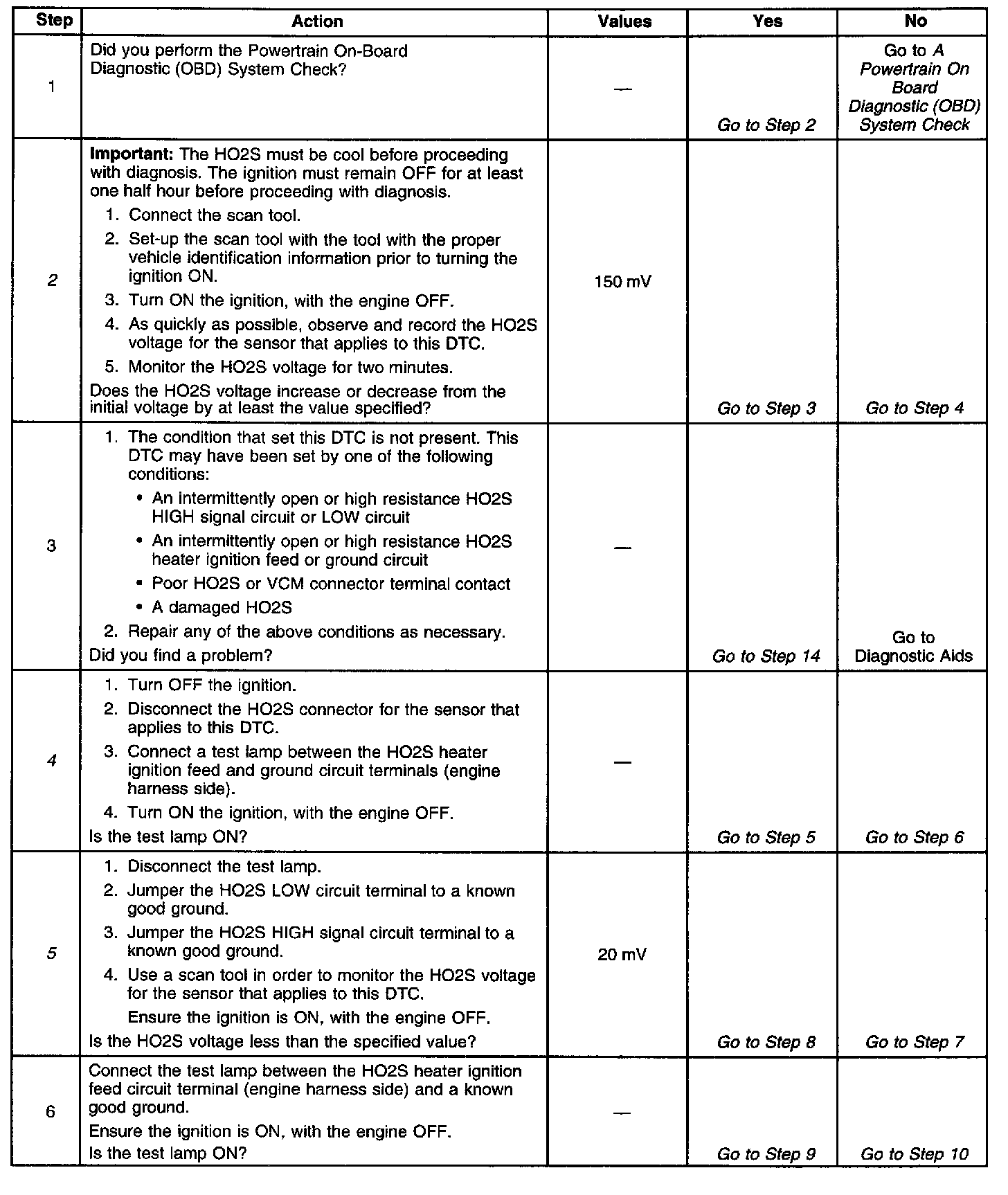 ^ An open or a short to voltage on either the HO2S signal or HO2S low circuits