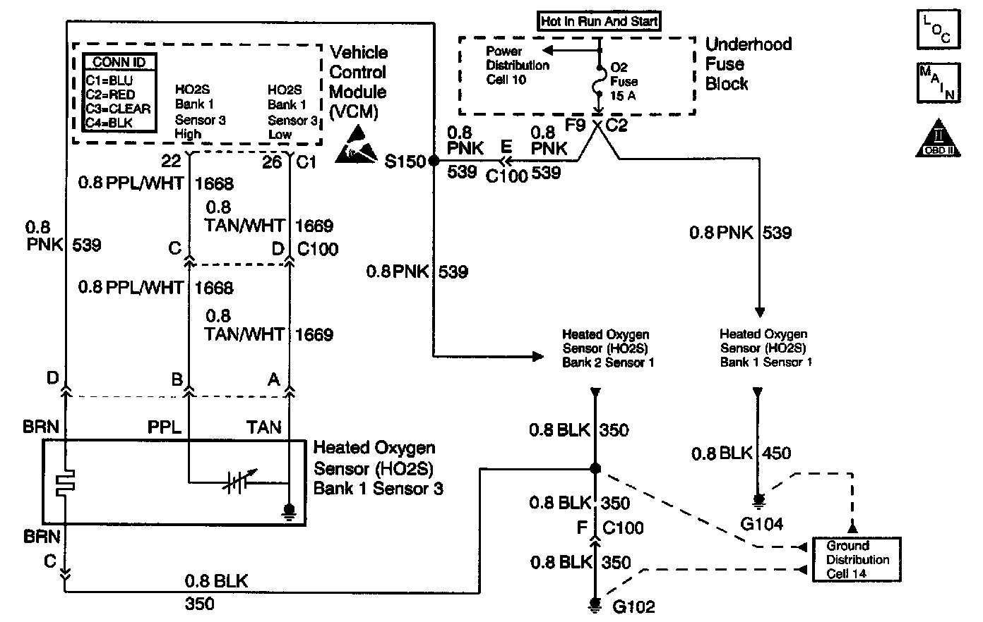 This Diagnostic Trouble Code (DTC) determines if the HO2S is functioning properly. It checks for an adequate number of HO2S voltage transitions above and below the bias range of 300-600 mV. This DTC sets when the Vehicle Control Module (VCM) fails to detect a minimum number of voltage transitions above and below the bias range during the test period. Possible causes of this DTC are: