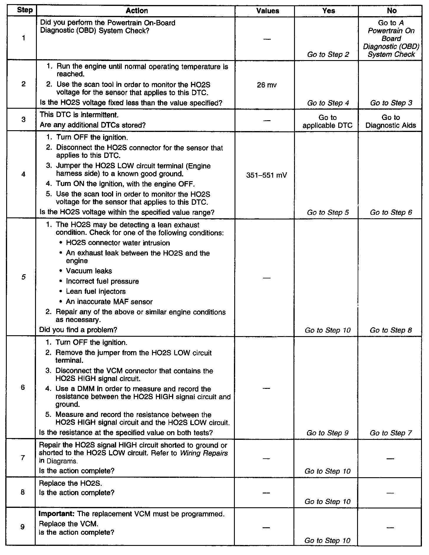 ^ The HO2S is correctly detecting a lean air-fuel ratio resulting from either a vacuum leak or a fuel control system fault.