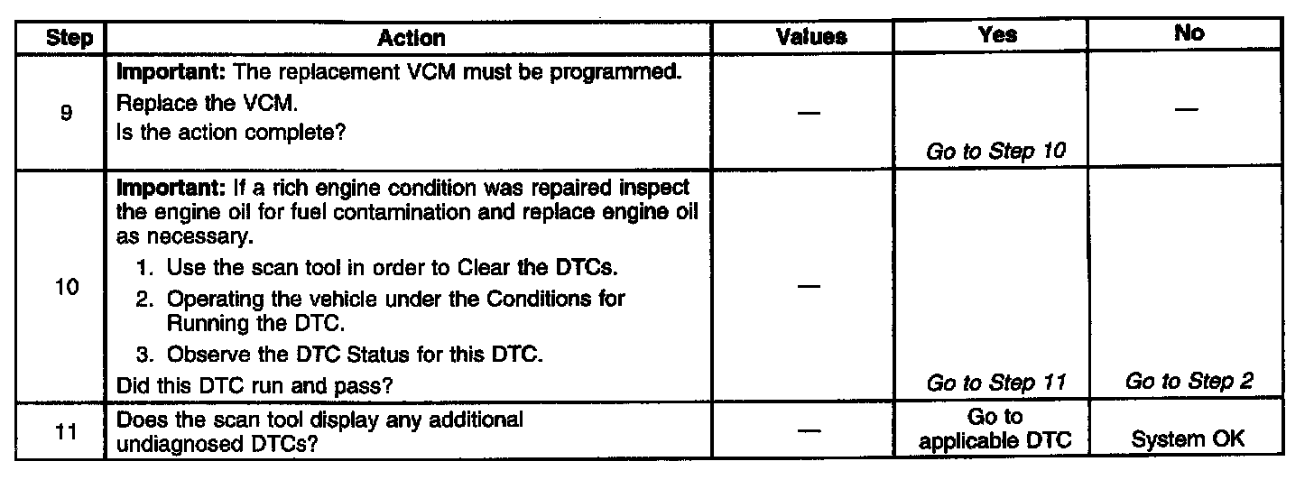 ^ The fuel pressure - If the pressure is too high, the system will run rich. The VCM can compensate for some increase. However, if The pressure gets too high, the DTC may set. Refer to Fuel System Diagnosis. Component Tests and General Diagnostics