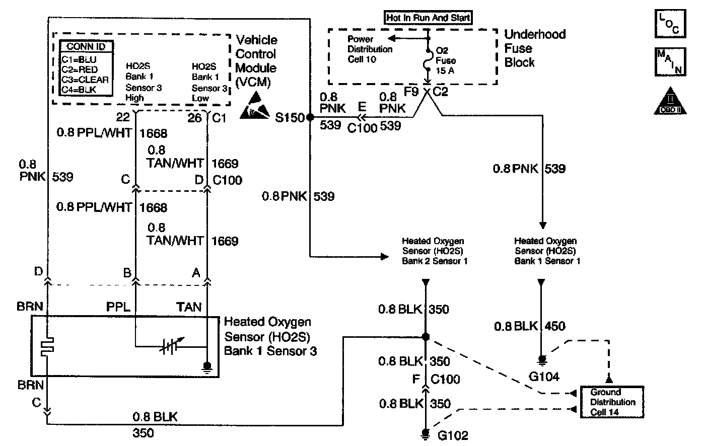 This DTC determines if the HO2S heater circuit is functioning properly by monitoring the amount of time required for the HO2S to reach operating temperature. This DTC sets when the VCM fails to detect HO2S voltage transitions above and below the bias range within a specified amount of time. Possible cause of this DTC are listed below.