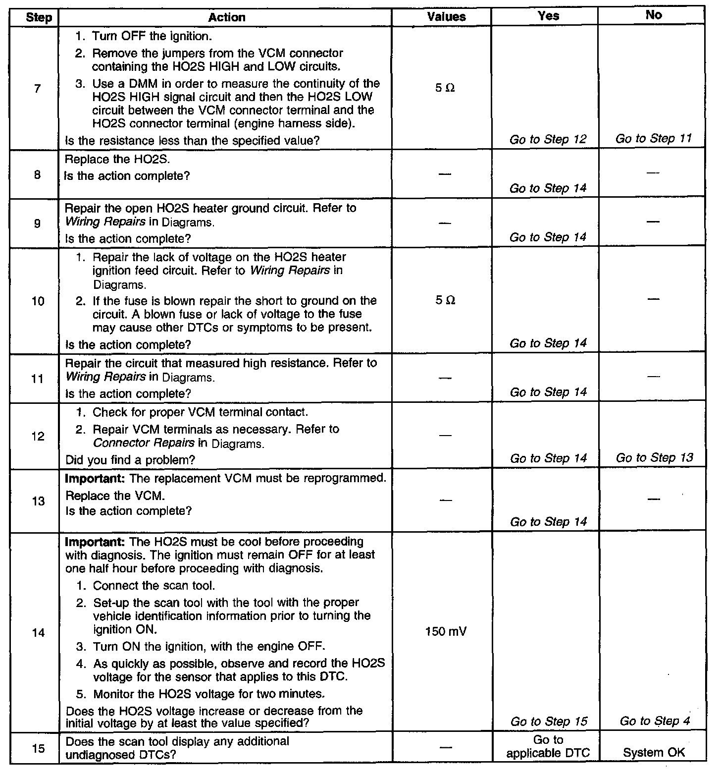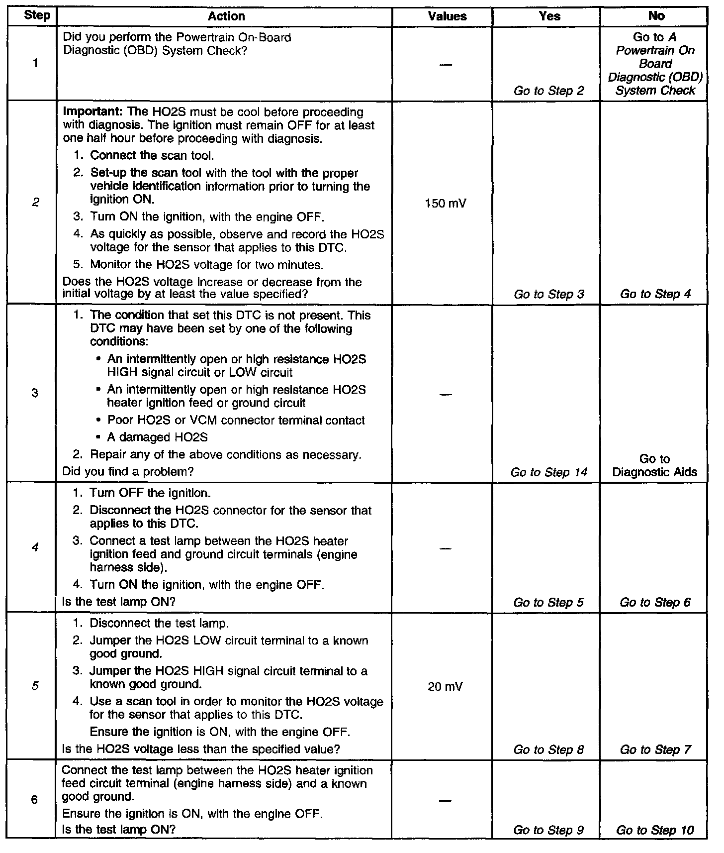 ^ An open or a short to voltage on either the HO2S signal or HO2S low circuits