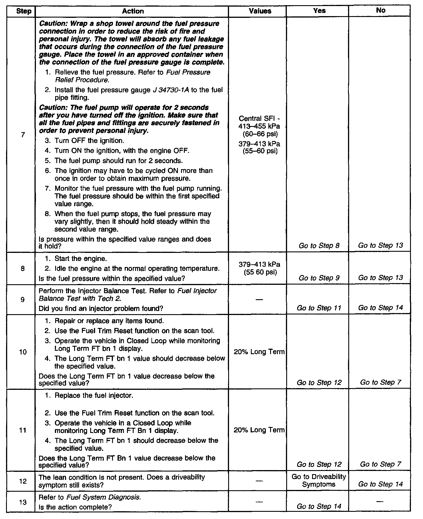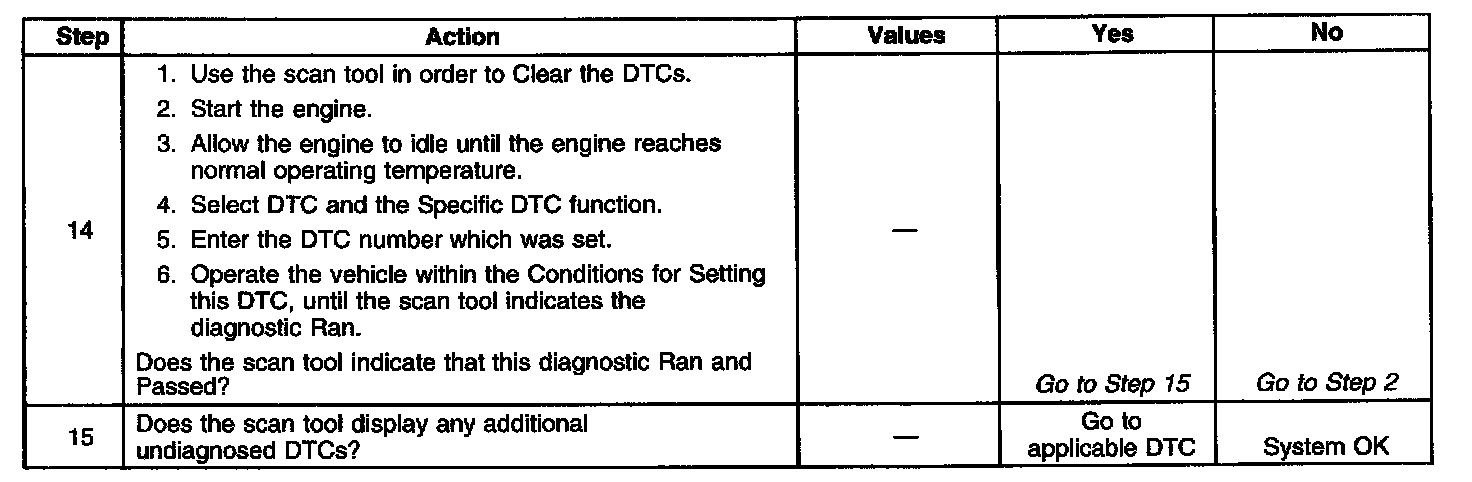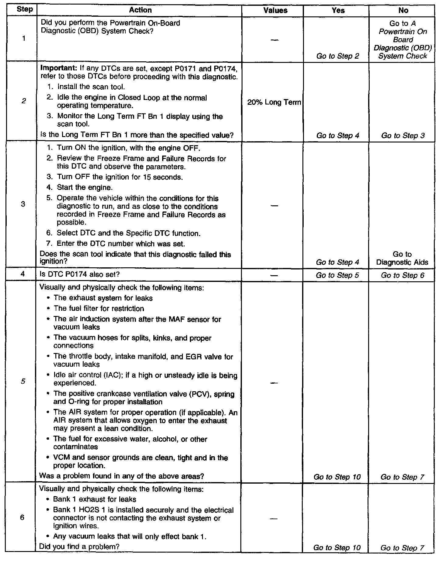 If using the diagnostic tables does not isolate the problem, try monitoring the Long Term FT and Fuel Trim cell while operating the vehicle under various loads. This may isolate the condition which caused the setting of the current DTC.