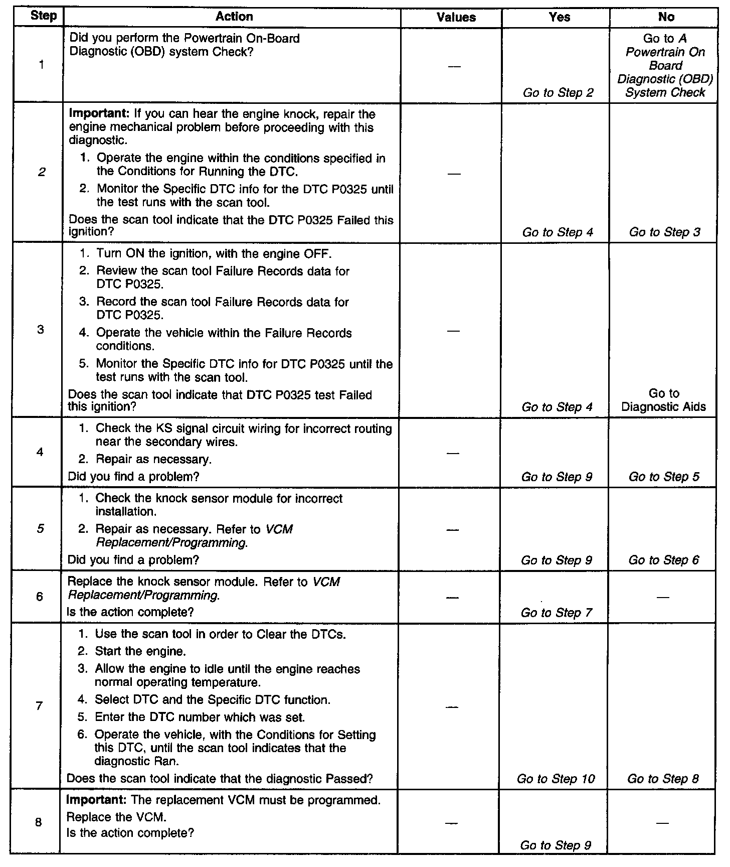 5. This step checks for an improperly installed knock sensor module.