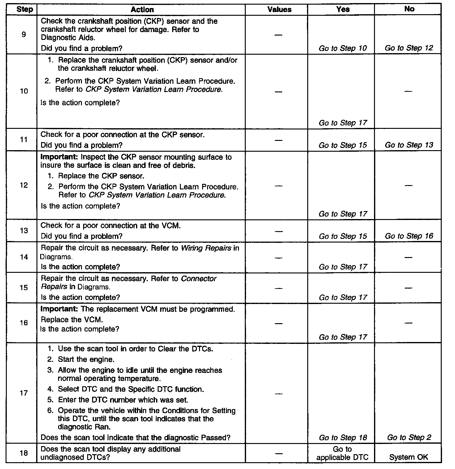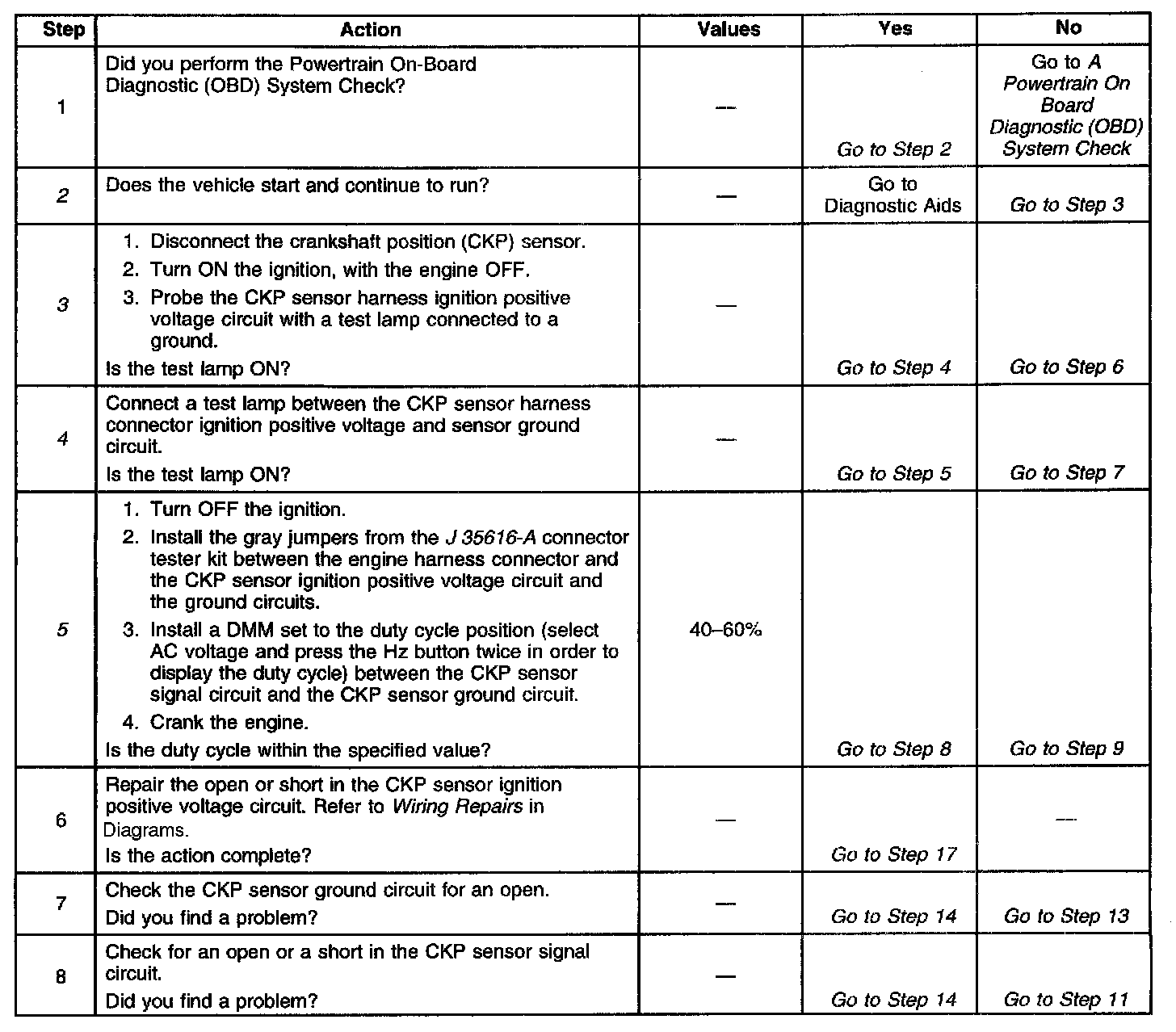 5. This step checks the crankshaft position sensor.