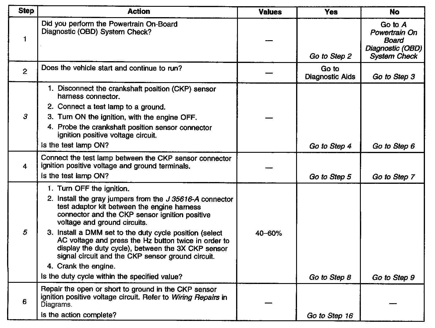 5. This step checks the duty cycle of the crankshaft position sensor.