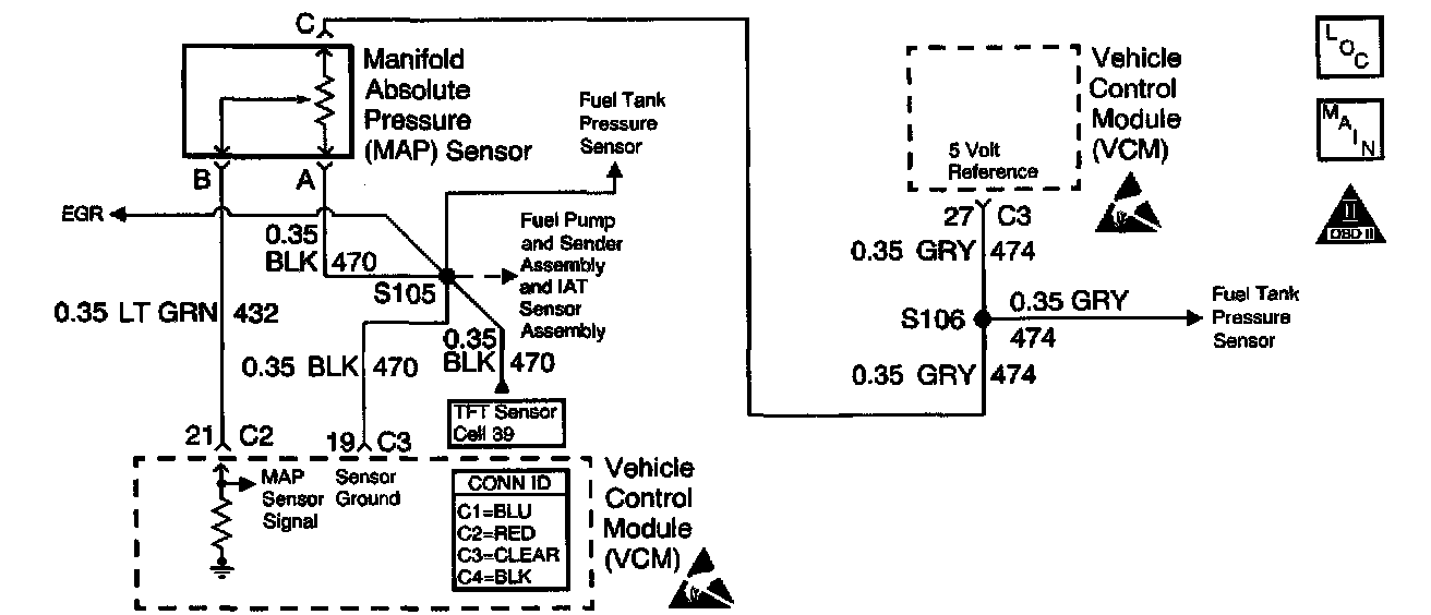 9. The 5 volt reference of the VCM supply is shared by the MAP, TP, FTP and EGR sensors. A short in any of the sensors 5 volt reference circuits or an internally shorted sensor will cause this DTC to set.