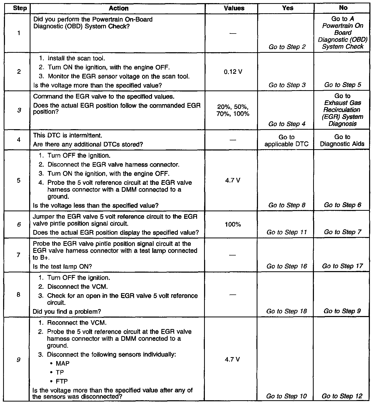 11. A 5 volt reference circuit short to the EGR valve feed control circuit will ground through the EGR valve when the EGR valve harness connector is connected.