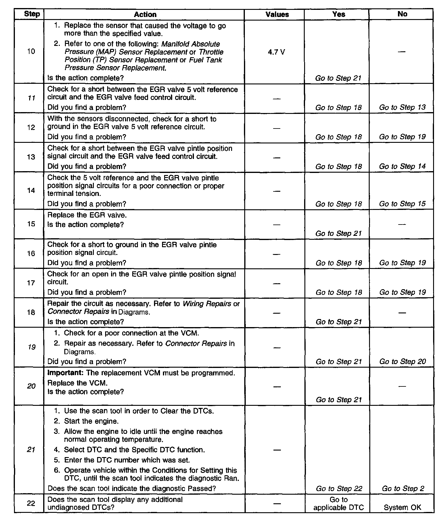 21. Clearing the DTCs is a very important step for this diagnostic. The clearing function allows the EGR valve to relearn a new minimum pintle position.
