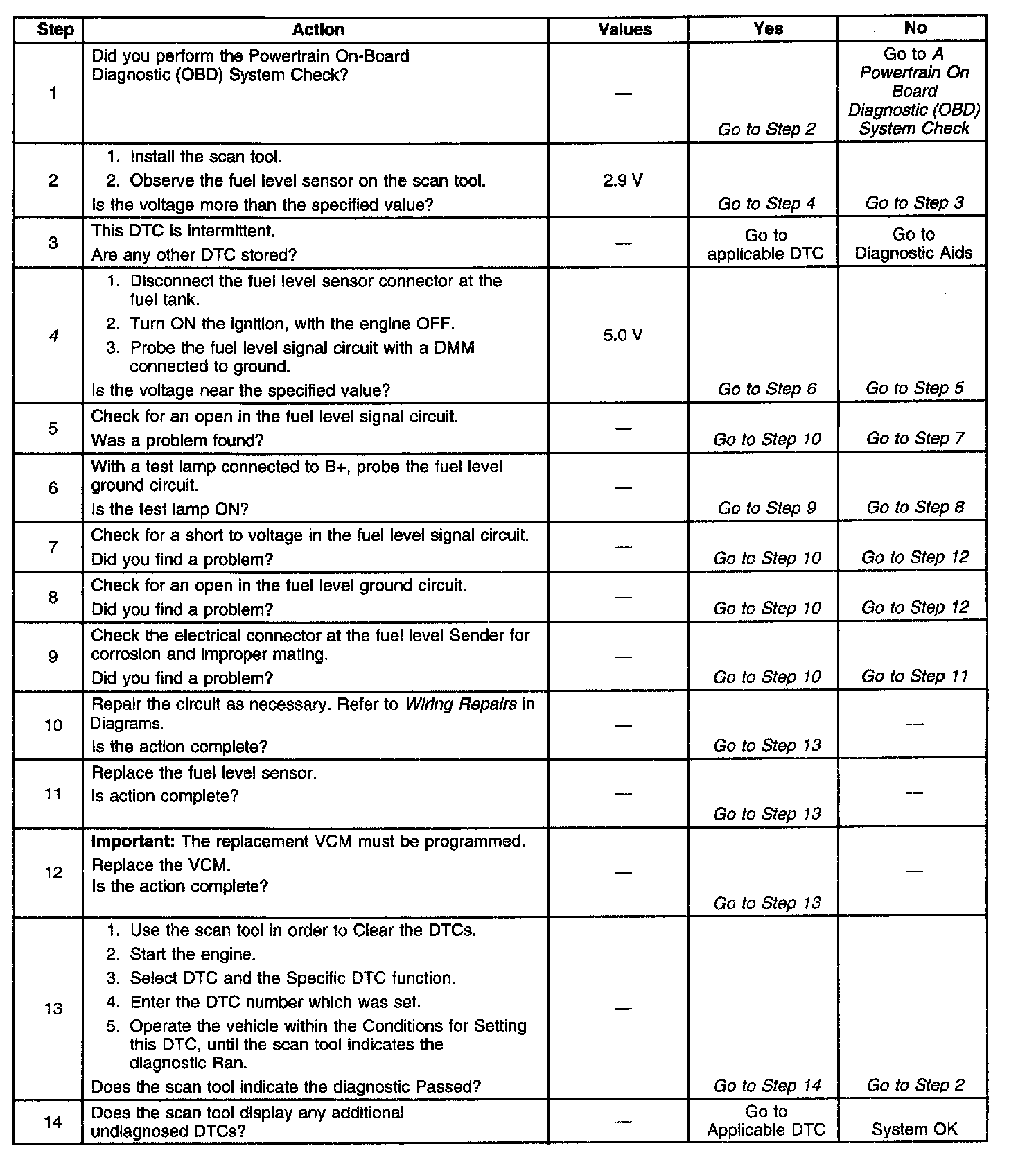 IMPORTANT: Fuel level is used to determine EVAP system diagnosis. Always diagnose the fuel level sensor before any other EVAP system components or DTCs.