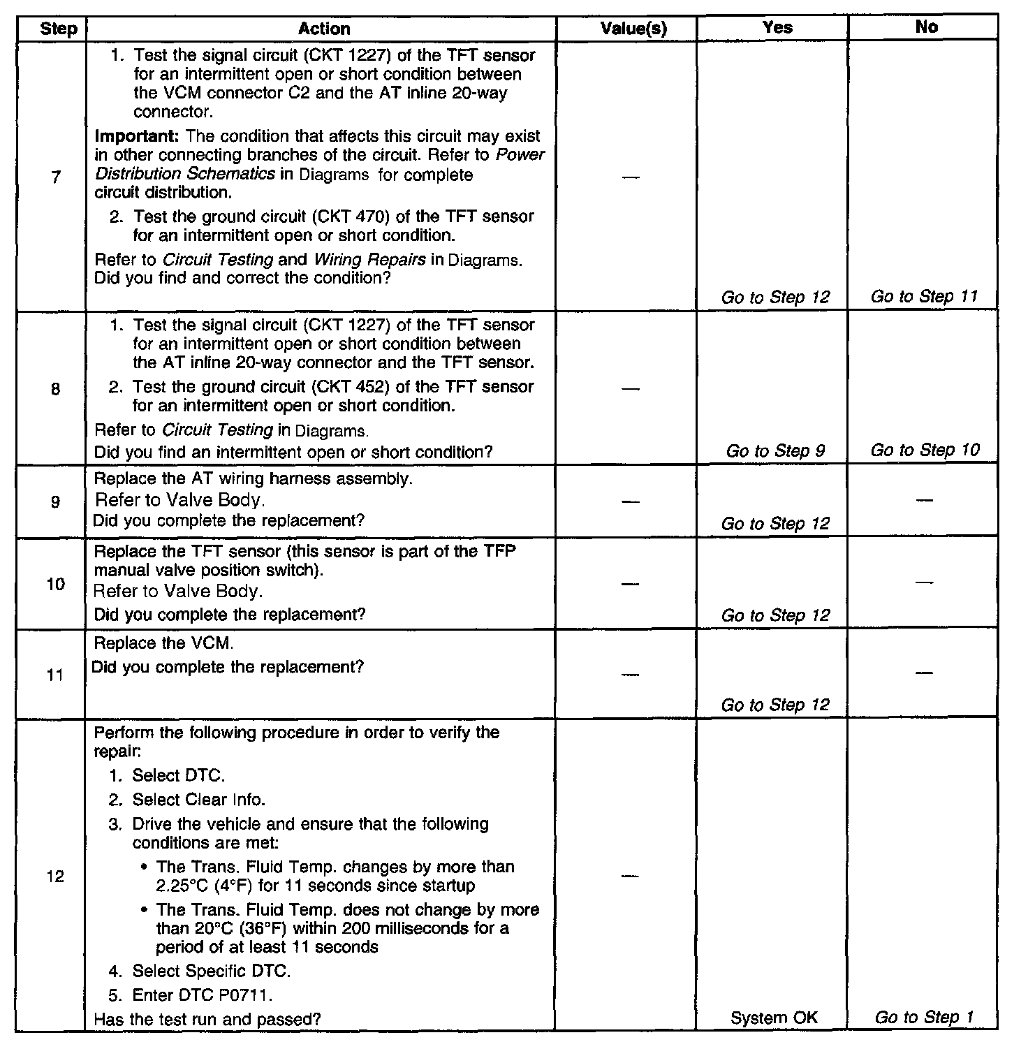 6. This step determines if the VCM or the TFT sensor is causing a steady, unchanging TFT reading.