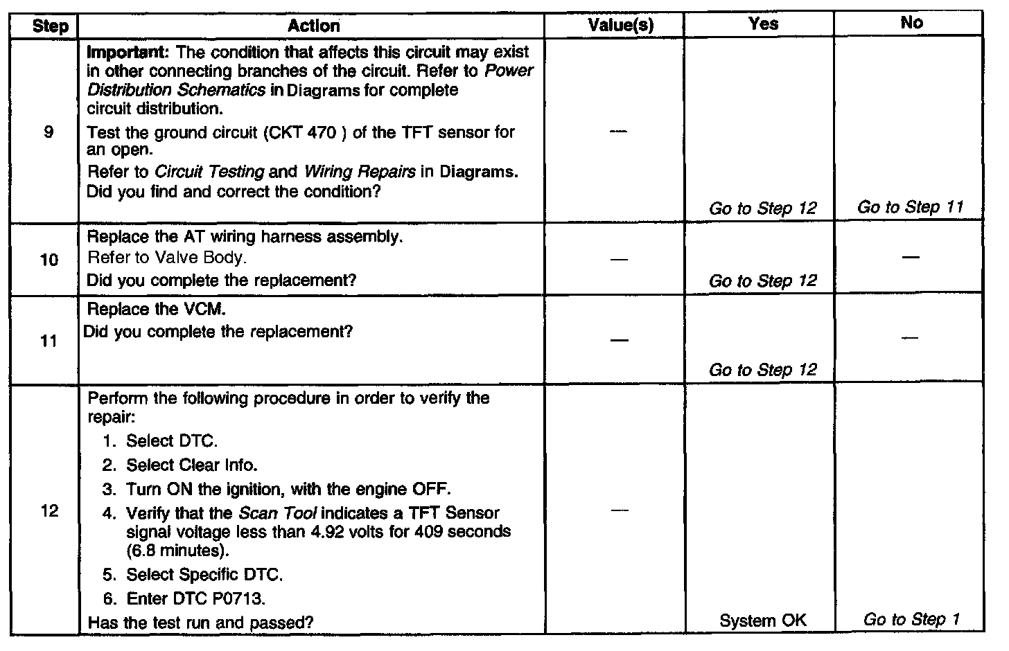 3. This step verifies a condition in the TFT sensor circuit