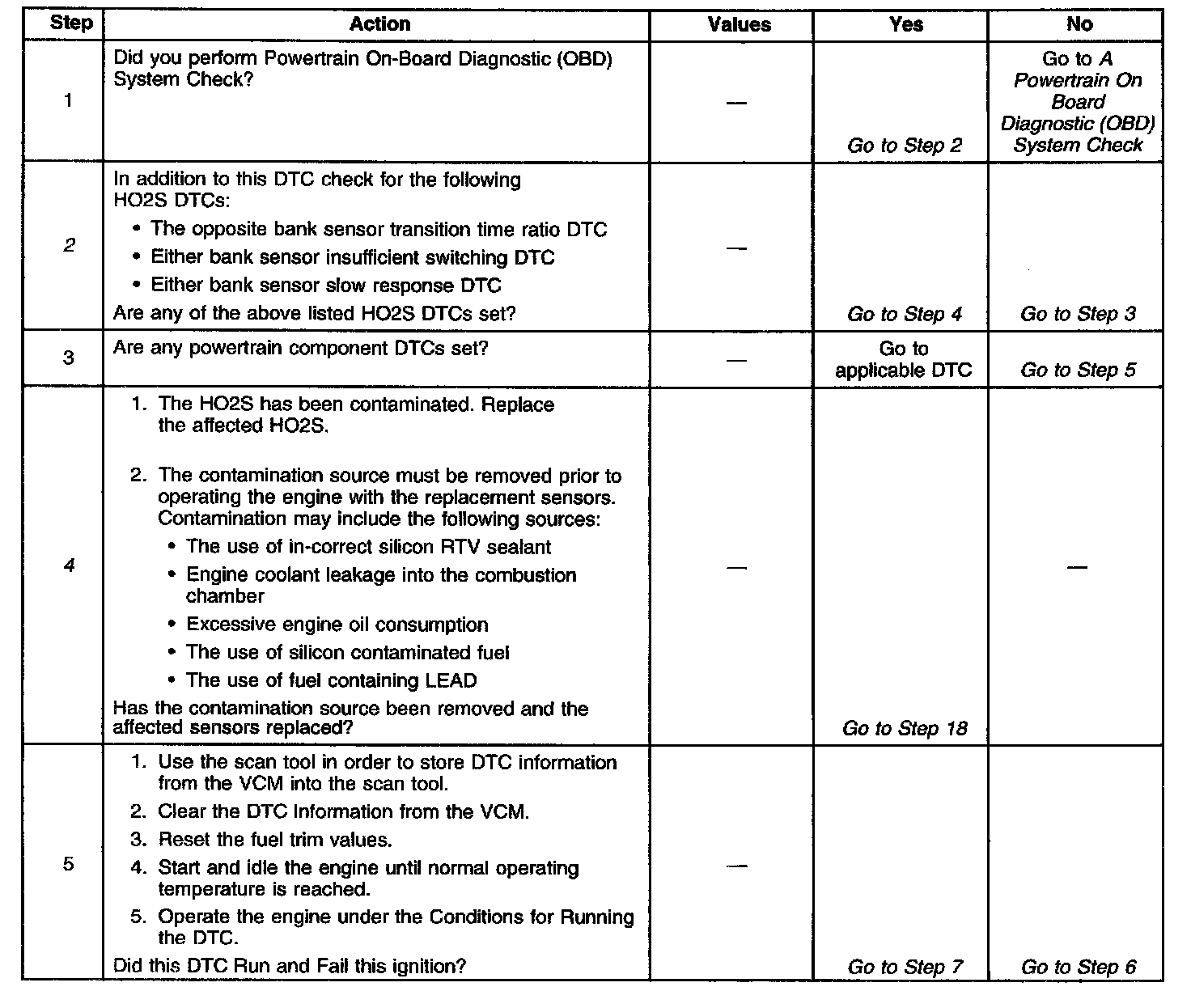 2. HO2S contamination is indicated if multiple response, switching or time ratio HO2S DTCs are set.