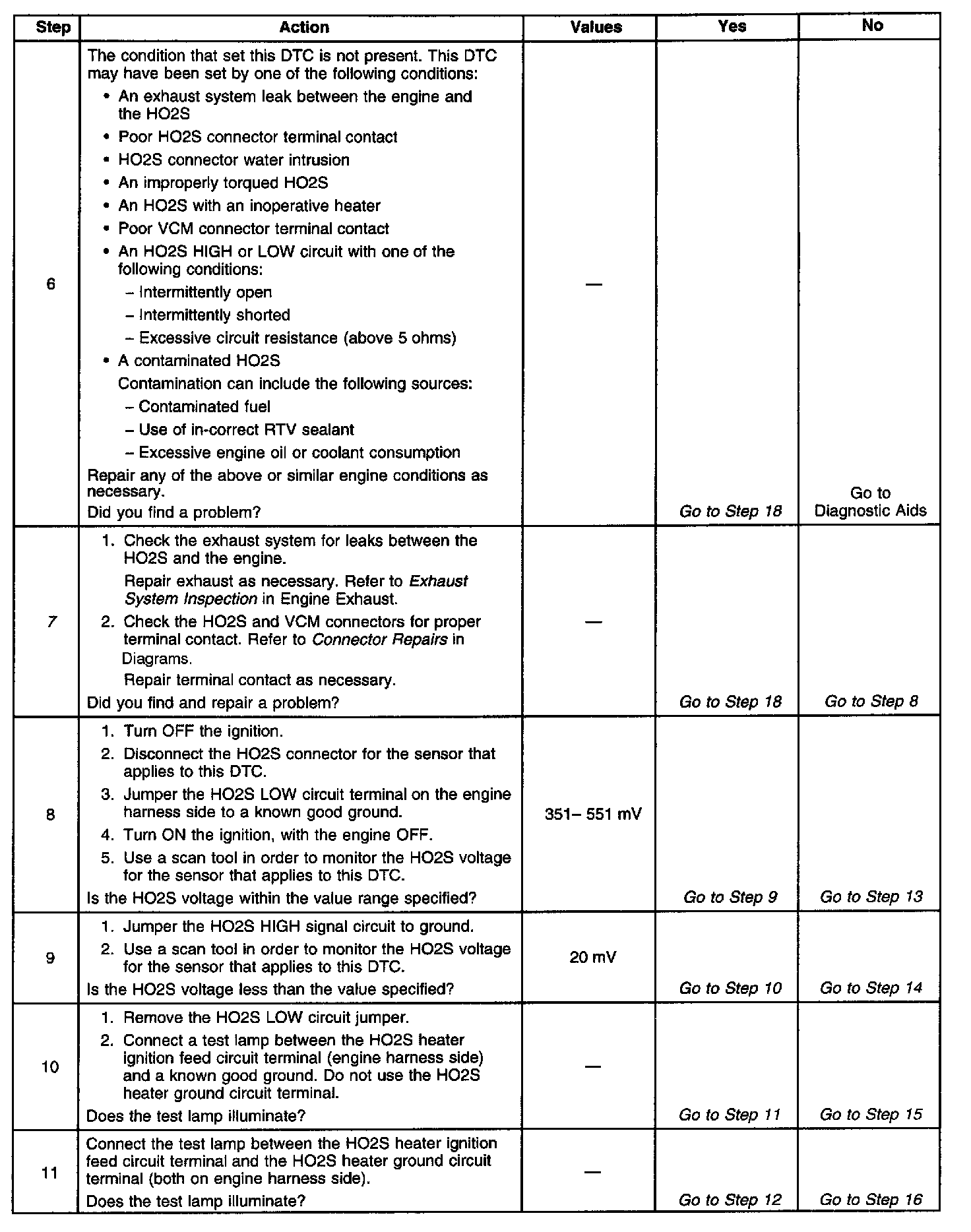 ^ An open or a short to voltage on either the HO2S signal or HO2S low circuits