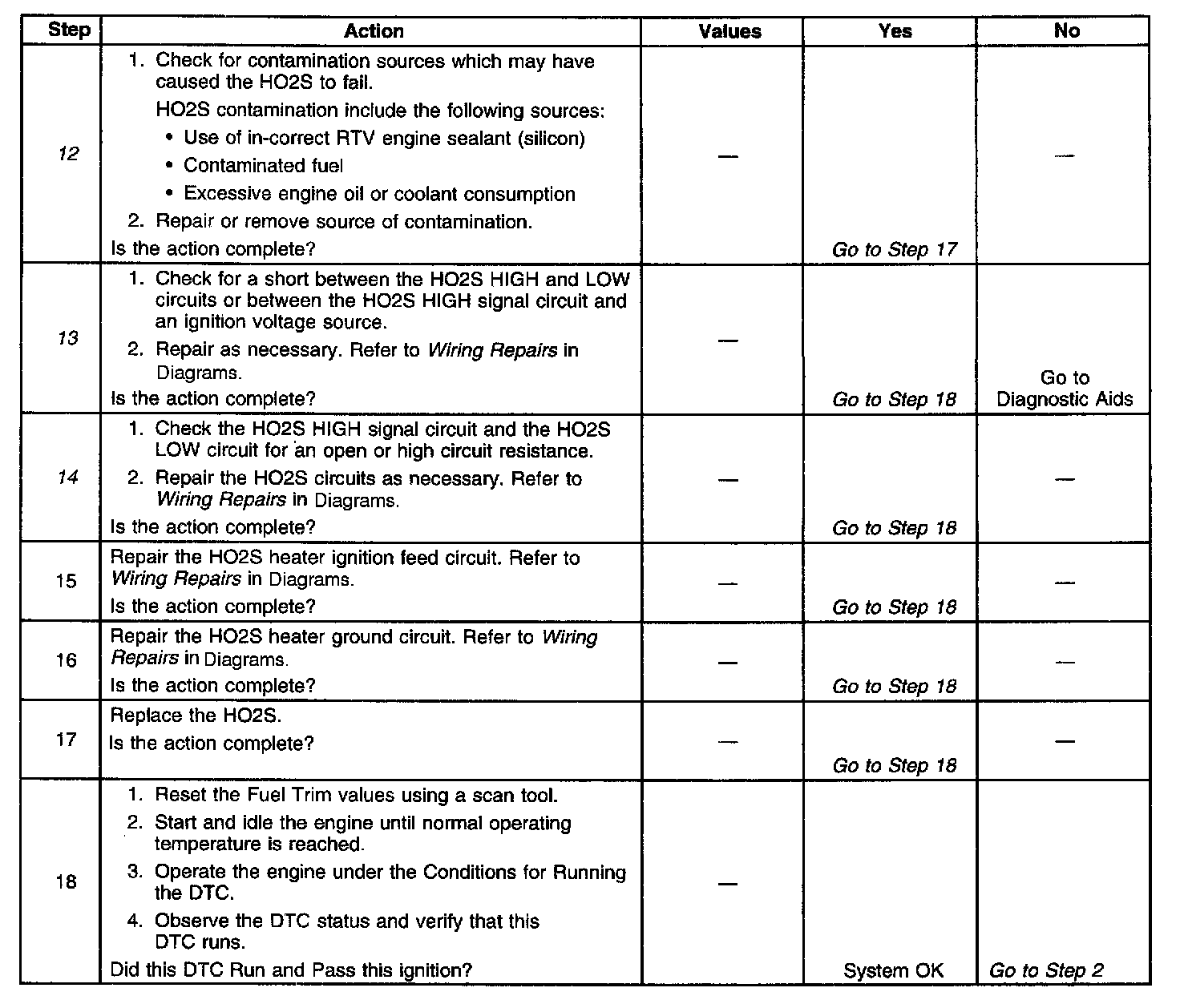The numbers below refers to the step numbers on the diagnostic table.