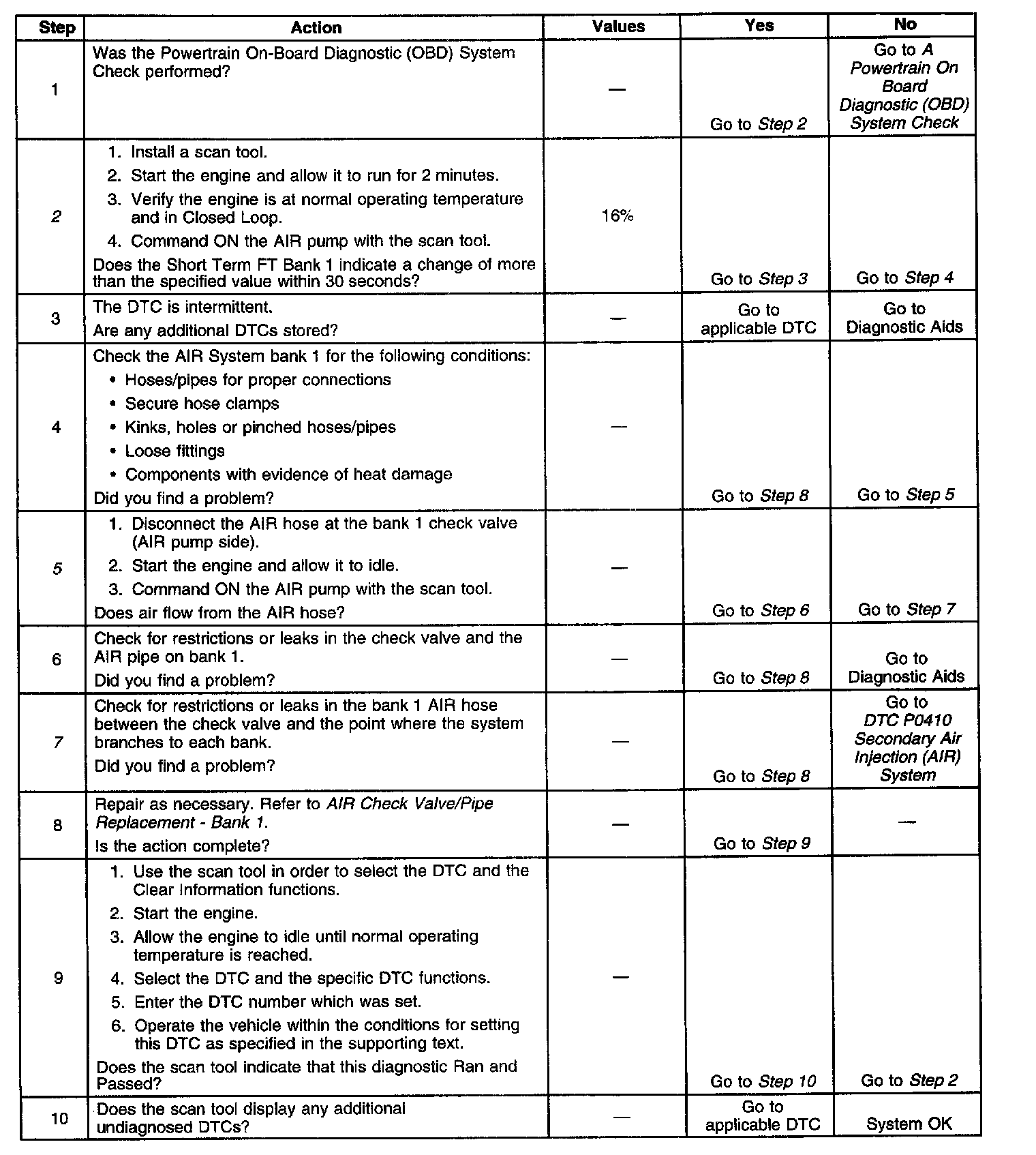 7. Although P0410 may not have set, the P0410 diagnostic includes a more comprehensive check of the AIR system that may help identify a symptom not identified in this diagnostic.