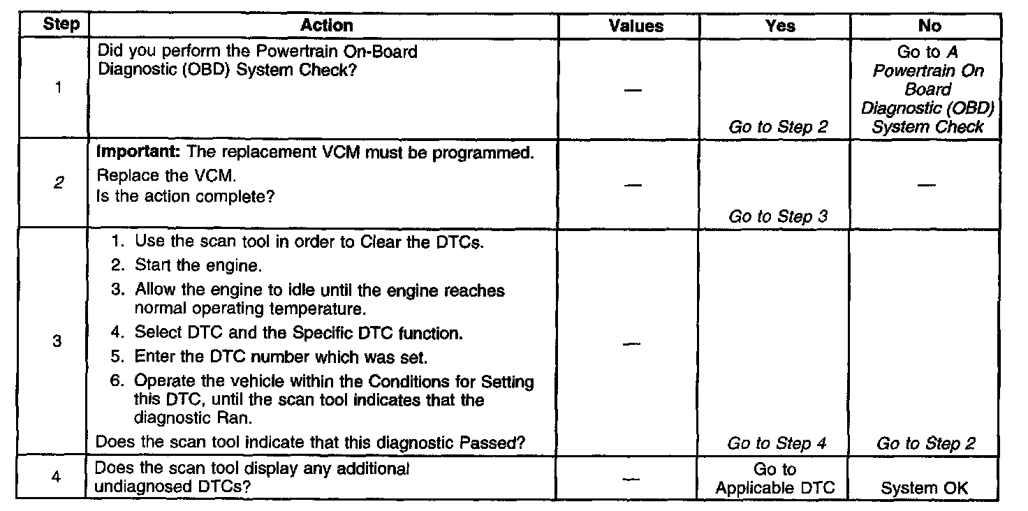 Replace the VCM even if this DTC exists only in history. Refer to VCM Replacement/Programming.