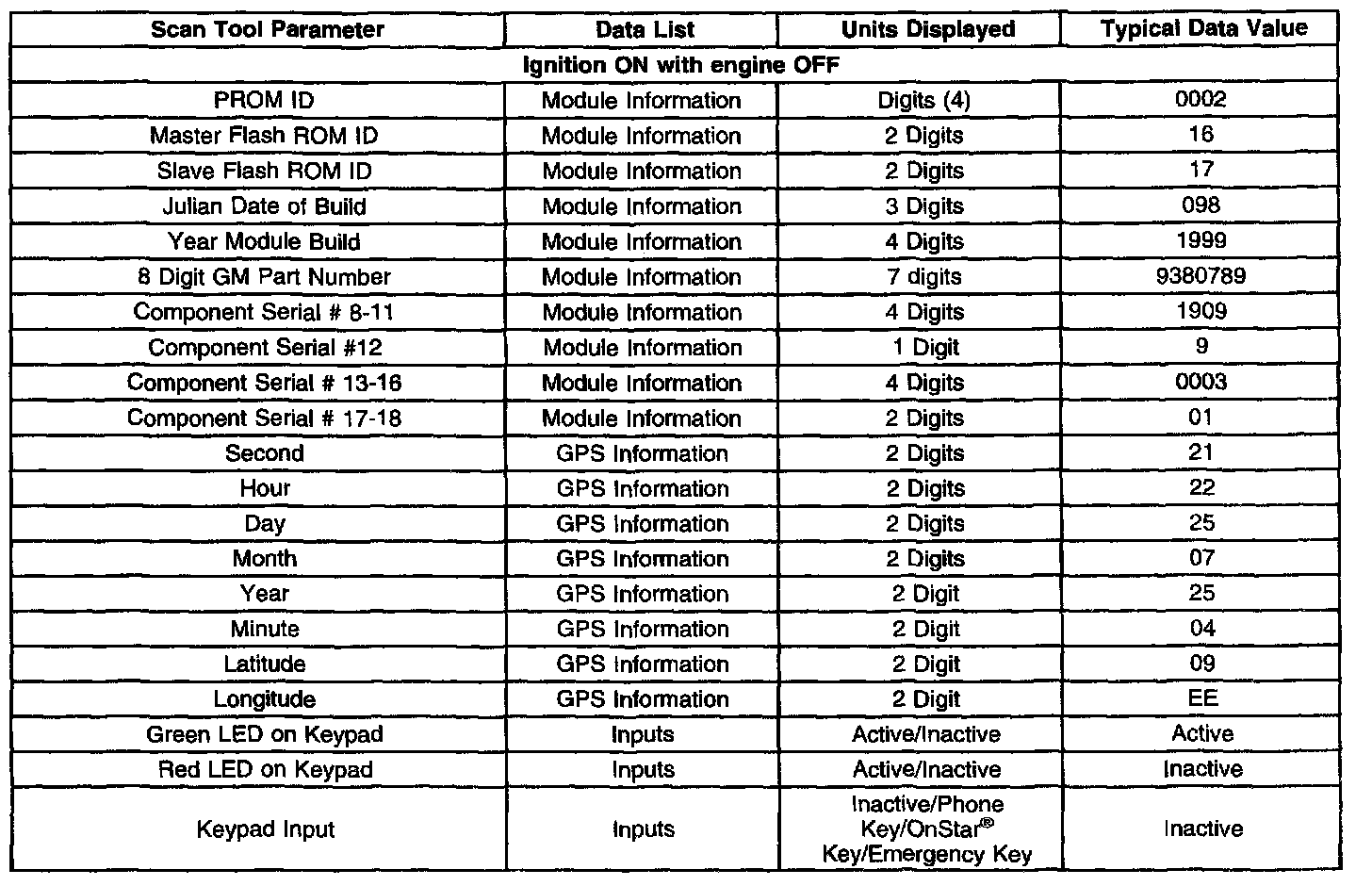 Scan Tool Data List