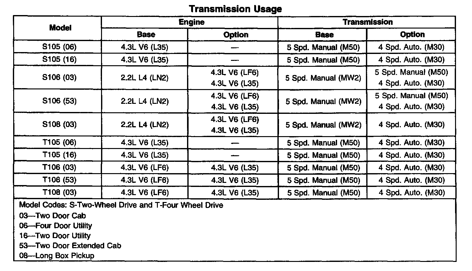 S10/T10 P/U 2WD V6-4.3L VIN W