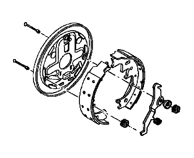 1. Lubricate the brake shoe backing plate, the adjusting screw threads, socket, and socket face with a thin coat of GM P/N 1052196 or equivalent.