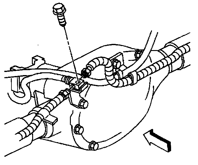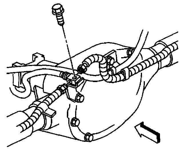 6. Remove the rear flex hose to bracket bolt mounted on rear drive axle.