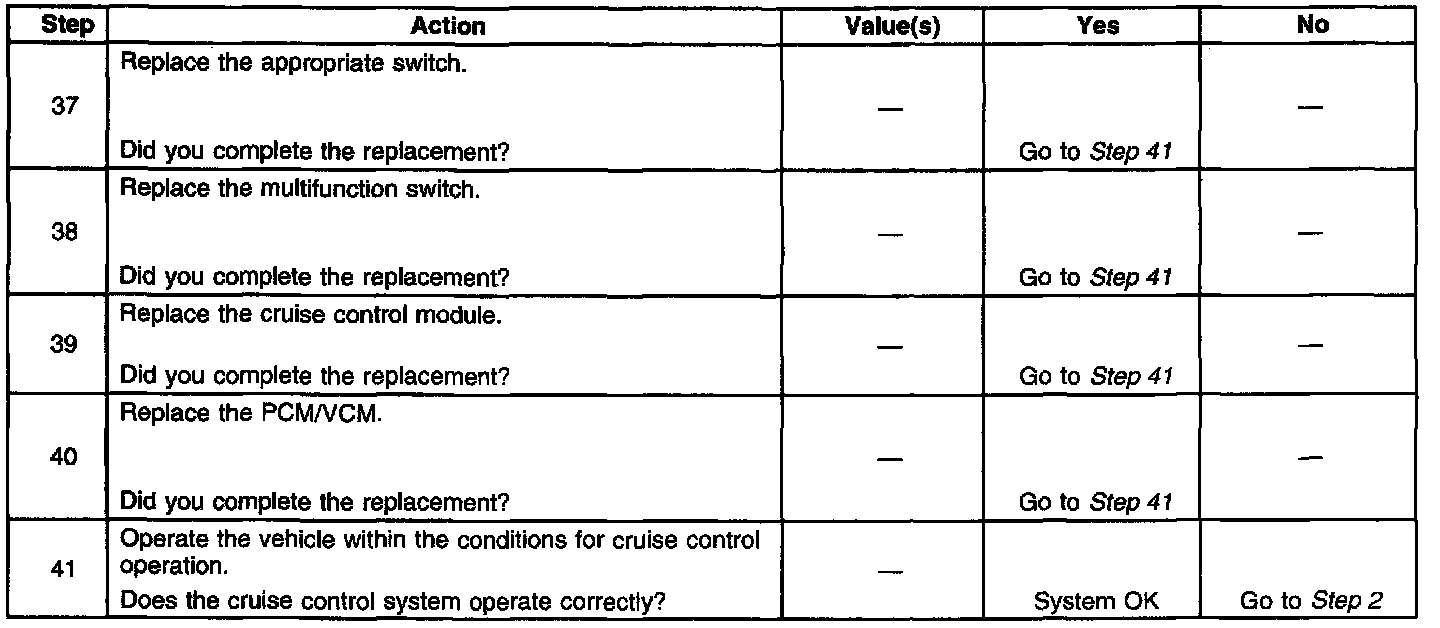 The vehicle speed is greater than 40 km/h (25 mph) Cruise Control Inoperative/Malfunctioning
