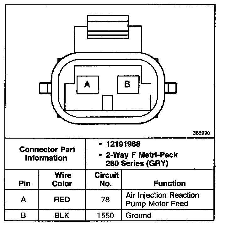 Secondary Air Injection Reactor (AIR) Pump Connector C2 (W/California Emission):