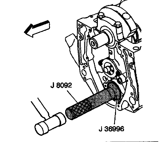 2. Use the J 36996 and the J 8092 in order to install the balance shaft.