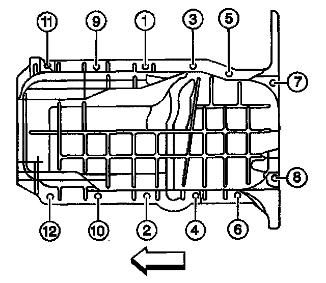 8. Tighten the oil pan bolts and nuts in sequence (1 - 12).