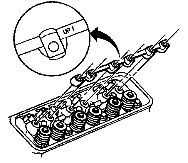 Important: Be sure that the arrow on the valve rocker arm support is in the up position.