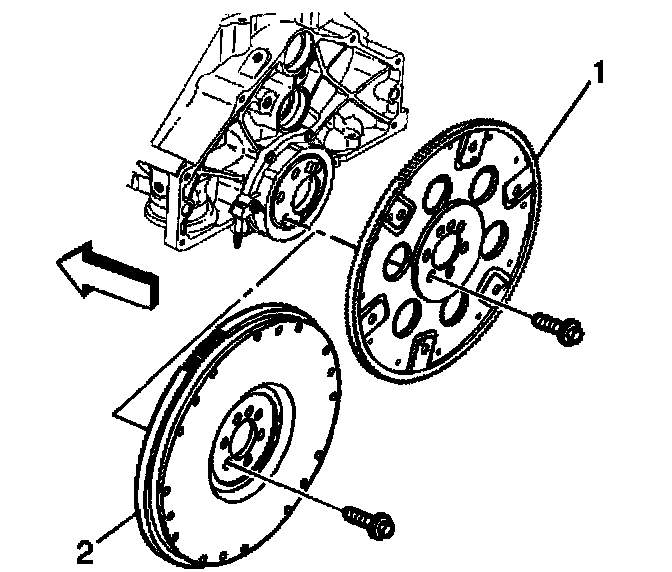 2. Install the engine flywheel (1) or (2) to the crankshaft.
