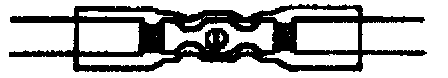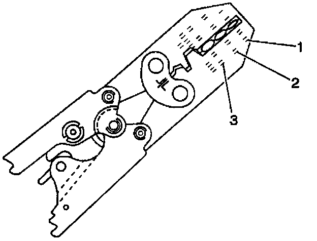 6. Place the splice sleeve in the nest. Ensure that the crimp falls midway between the end of the barrel and the stop. The sleeve has a stop (3) in the middle of the barrel (2) in order to prevent the wire (1) from going further. Close the hand crimper handles slightly in order to firmly hold the splice sleeve in the proper nest.
