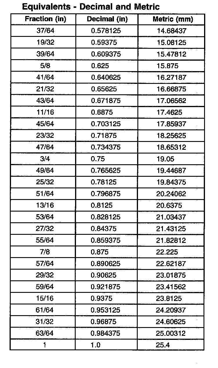 Equivalents - Decimal And Metric (Part 2 Of 2):